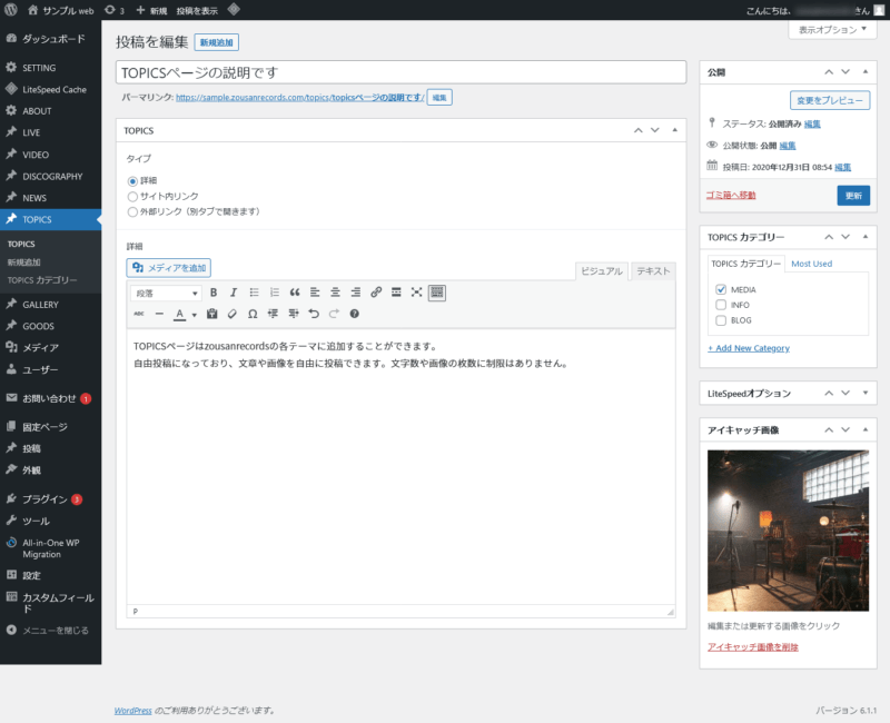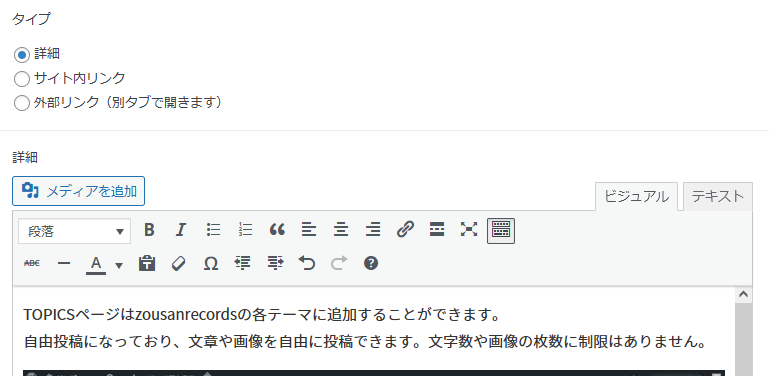 TOPICSページはzousanrecordsの各テーマにオプションとして追加することができます。